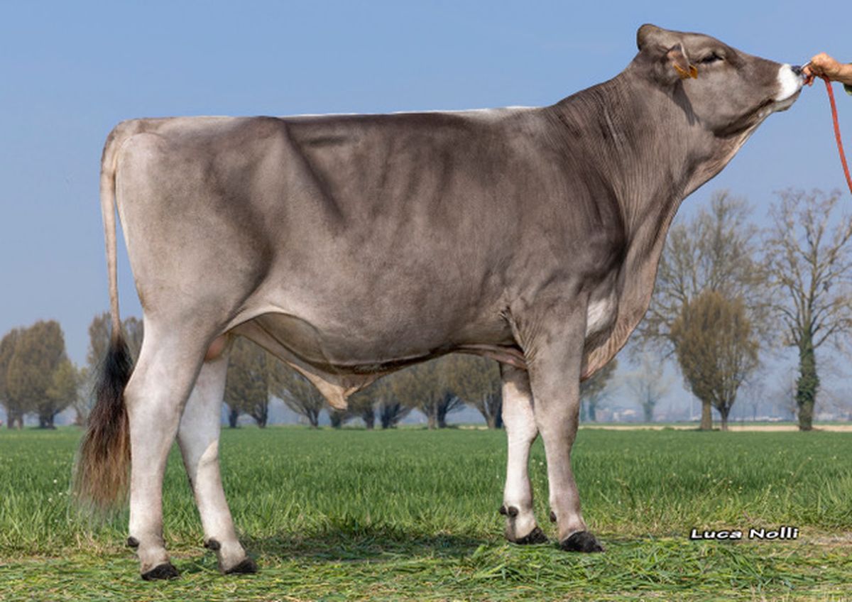 The Brown Swiss is a cattle breed originating from the mountainous regions of Switzerland, known for its adaptability and hardiness. Medium-sized, the Brown Swiss produces high-quality milk, ideal for cheese production. Its coat ranges from dark gray to brown.
